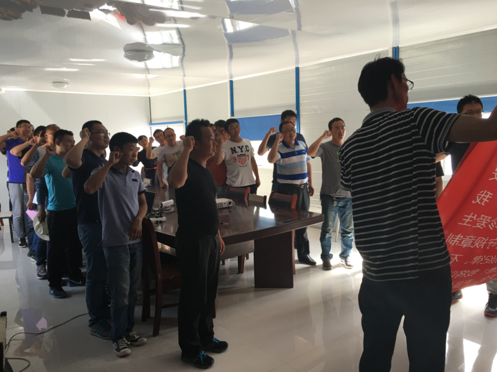 日下午,市政工程公司呼市项目组织全体员工就安全承诺进行宣誓,引导全员将誓词内容落实到工程管理与施工作业的各个环节,使安全誓言深入人心,确保“安全生产月”活动取得实效。