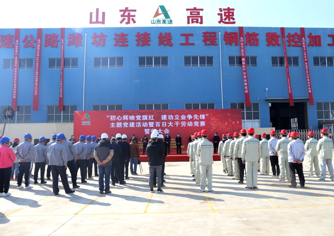 3月18日,潍日高速公路潍坊连接线项目组织开展“初心辉映党旗红 建功立业争先锋”主题党建活动暨百日大干劳动竞赛誓师大会,地方政府、业主监理单位、参建代表共60余人参加活动。